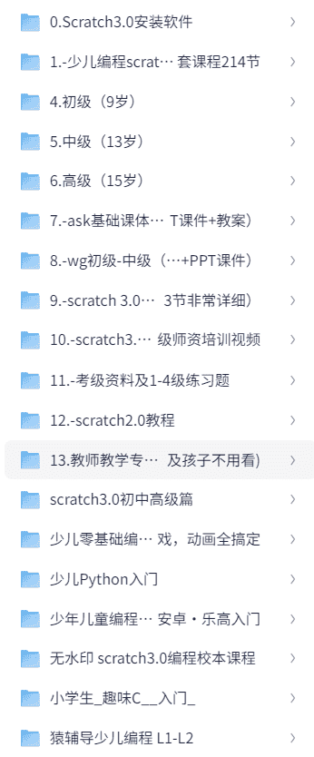 少儿、少年、青少年,入门、初级、中级、高级编程课程合集20套【61.3GB】