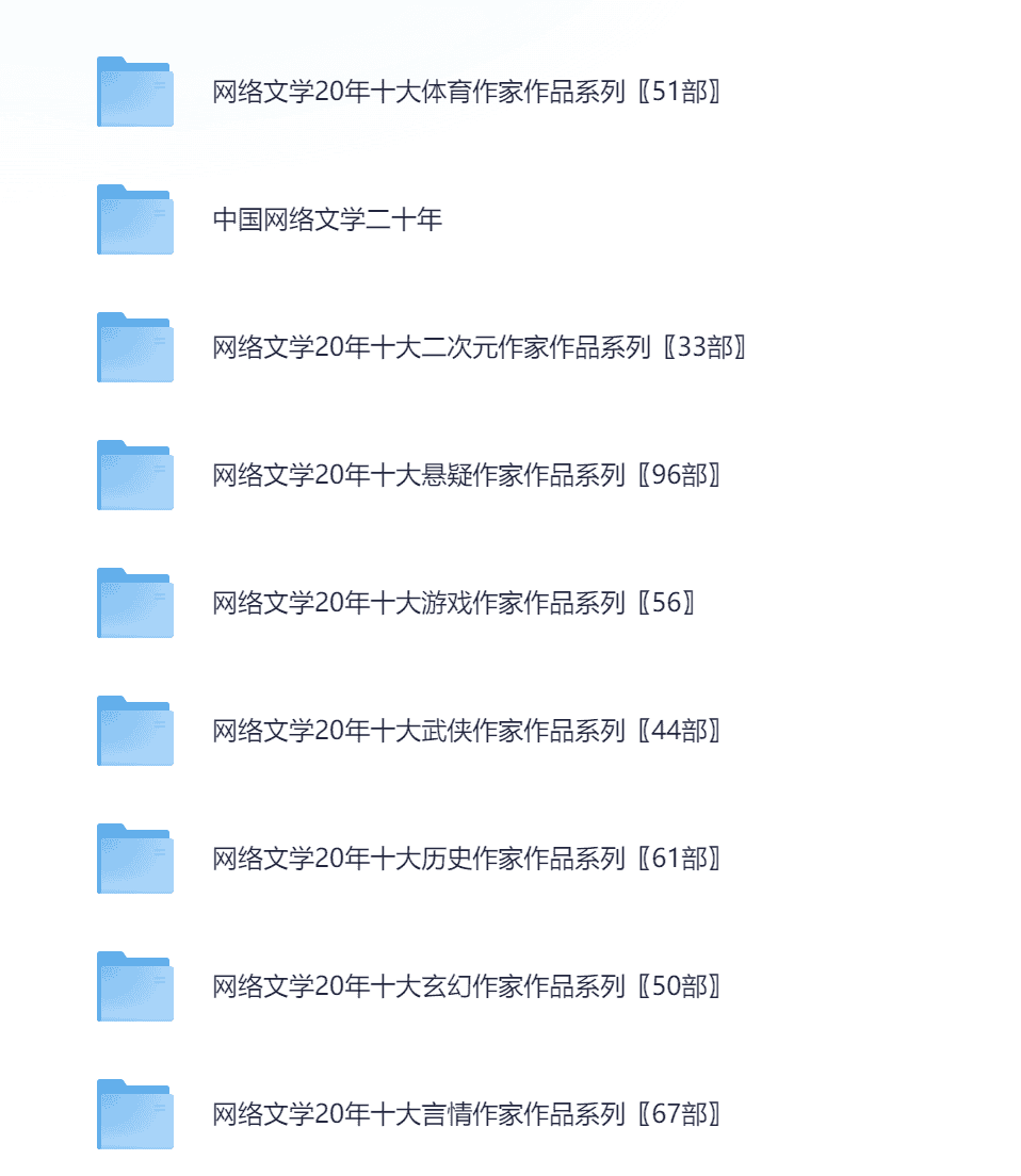 【网络文学20年人物篇·130位大神作家作品系列合集】已分类每类十位作家【704部精教版小说】txt格式 共3.2G