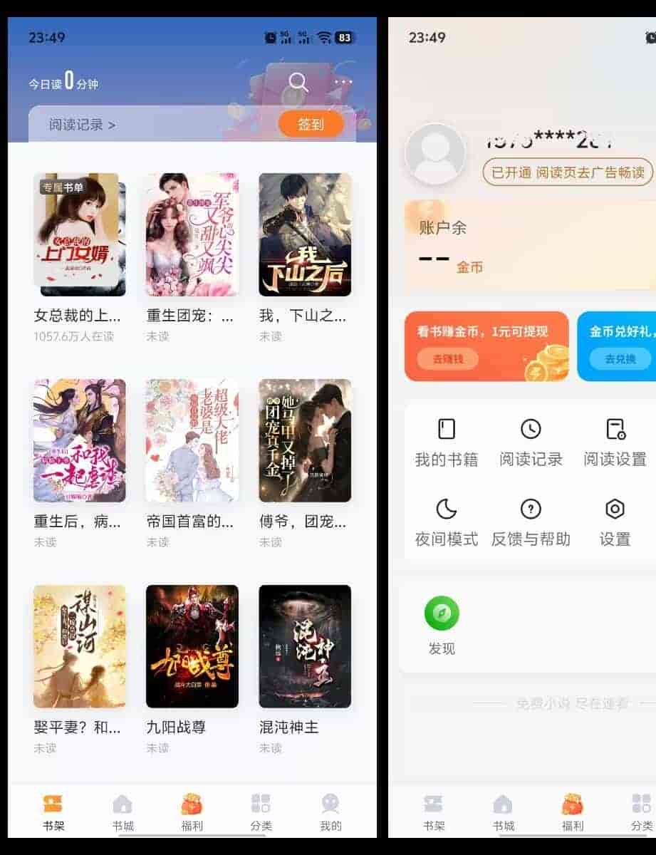 速看免费小说APP绿化版本 体积61,3M