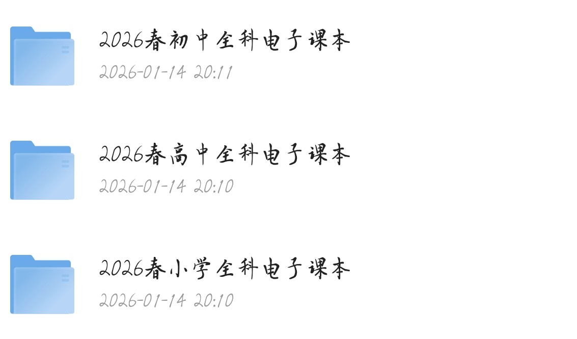 2026春季新学期电子课本合集新鲜出炉!合集覆盖小学、初中、高中全学段,包含语文、数学、英语、物理、化学、生物、历史、地理等全学科电子课本,均为高清PDF版本,适配手机、平板、电脑等设备查看,不管是学生预习复习,还是家长辅导孩子,都是超实用的学习资源!