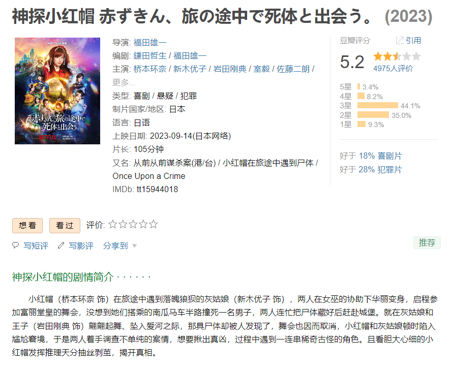 ❤️【岛国奇葩犯罪喜剧片】神探小红帽(奈飞版)【2023】BD1080P [中文字幕] [4.9G]