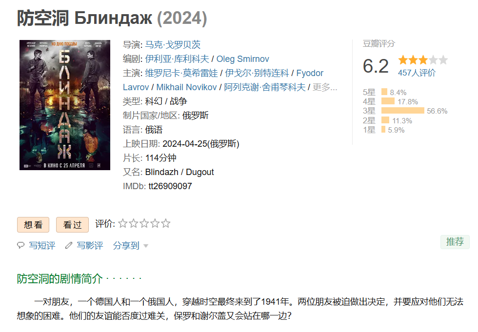❤️【俄罗斯穿越题材战争大片】防空洞【2024】BD1080P [中文字幕] [3.1G]