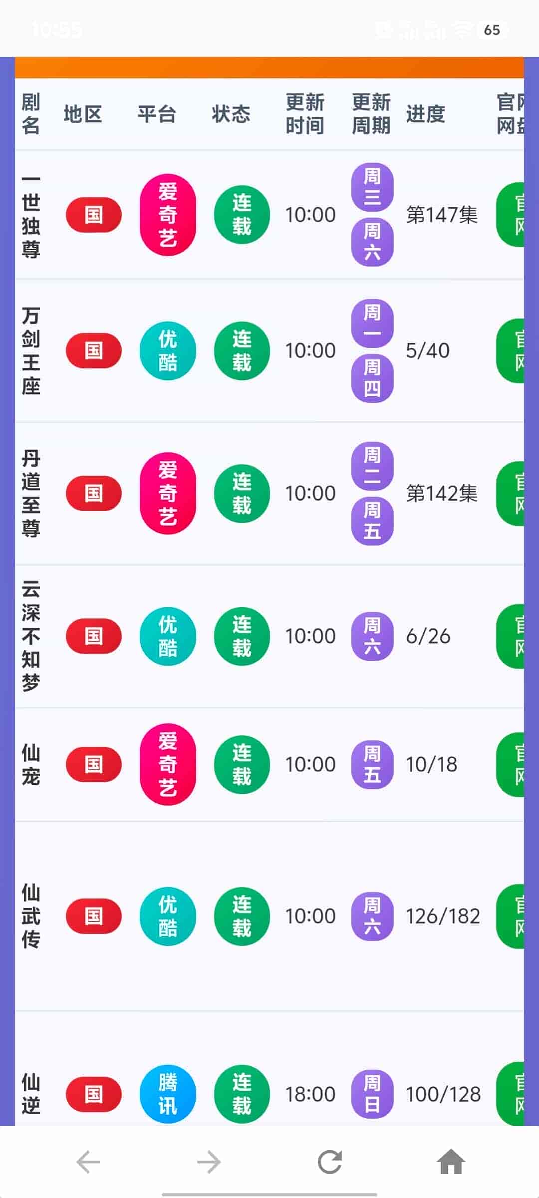 国漫,综艺,影视剧追更表,每一部剧的追更日期一目了然,数据源均来自官方平台,APP体积仅只有不到8M不占内存空间,精简。
