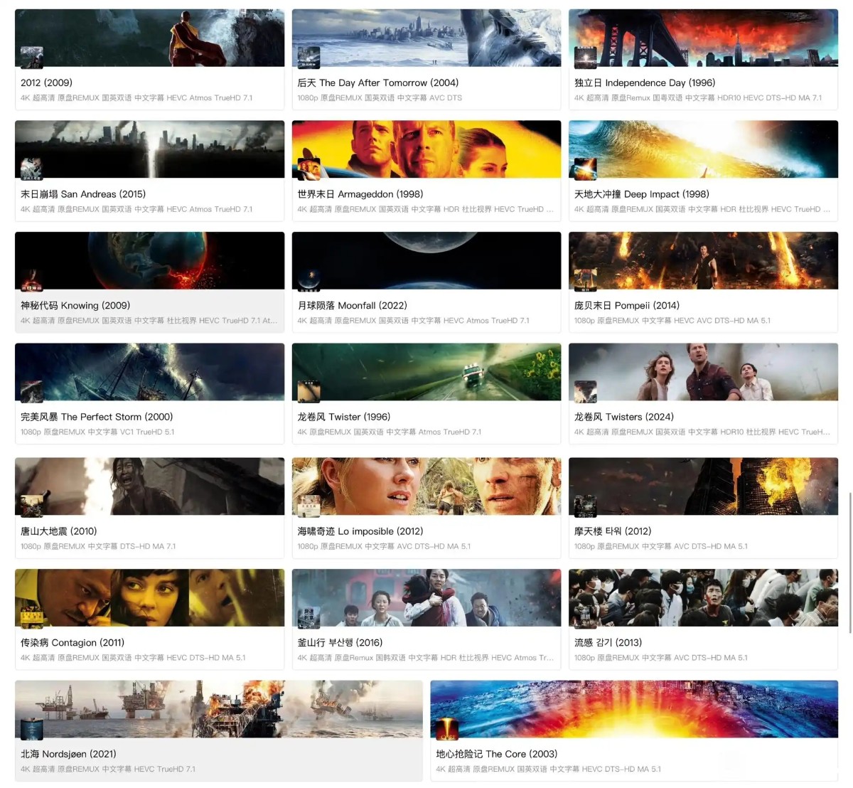 灾难电影大合集 [4K蓝光原盘珍藏版][中文字幕][国英双语][1TB]