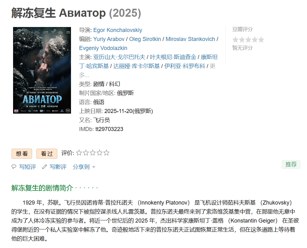 ❤️【俄罗斯科幻剧情片】解冻复生【2025】BD1080P [中文字幕] [3.6G]